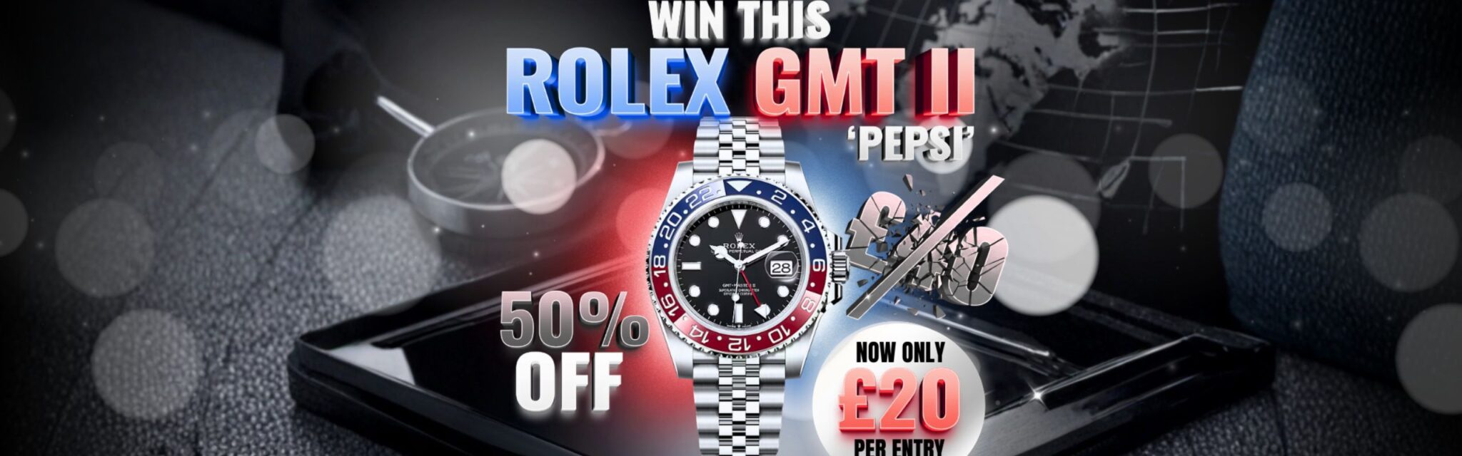 WIN ROLEX GMT-MASTER II 'PEPSI' - LOW ODDS! CURRENTLY 50% OFF TICKETS (LAUNCH SALE)