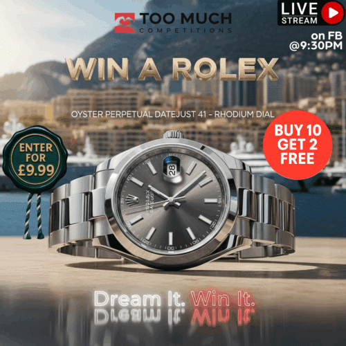 The live draw will take place on the TOO MUCH PRODUCTION LTD Facebook page using Google’s random number generator to select the winning ticket number from all Entrants.