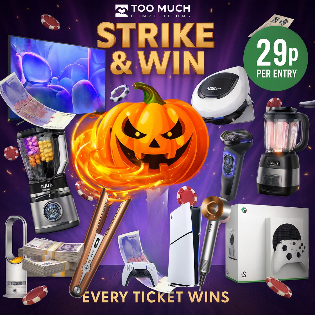 The live draw will take place on the TOO MUCH PRODUCTION LTD Facebook page using Google’s random number generator to select the winning ticket number from all Entrants.