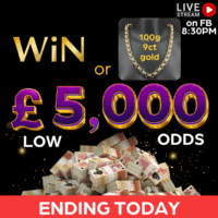 Win 100g of 9ct Gold or take £5,000 Tax Free Cash