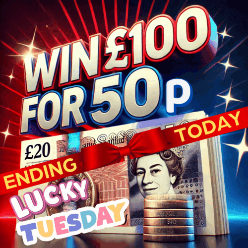 LIVEDRAW#17 WIN £100 TAX FREE CASH FOR 50P – LUCKY TUESDAY ENDING TODAY