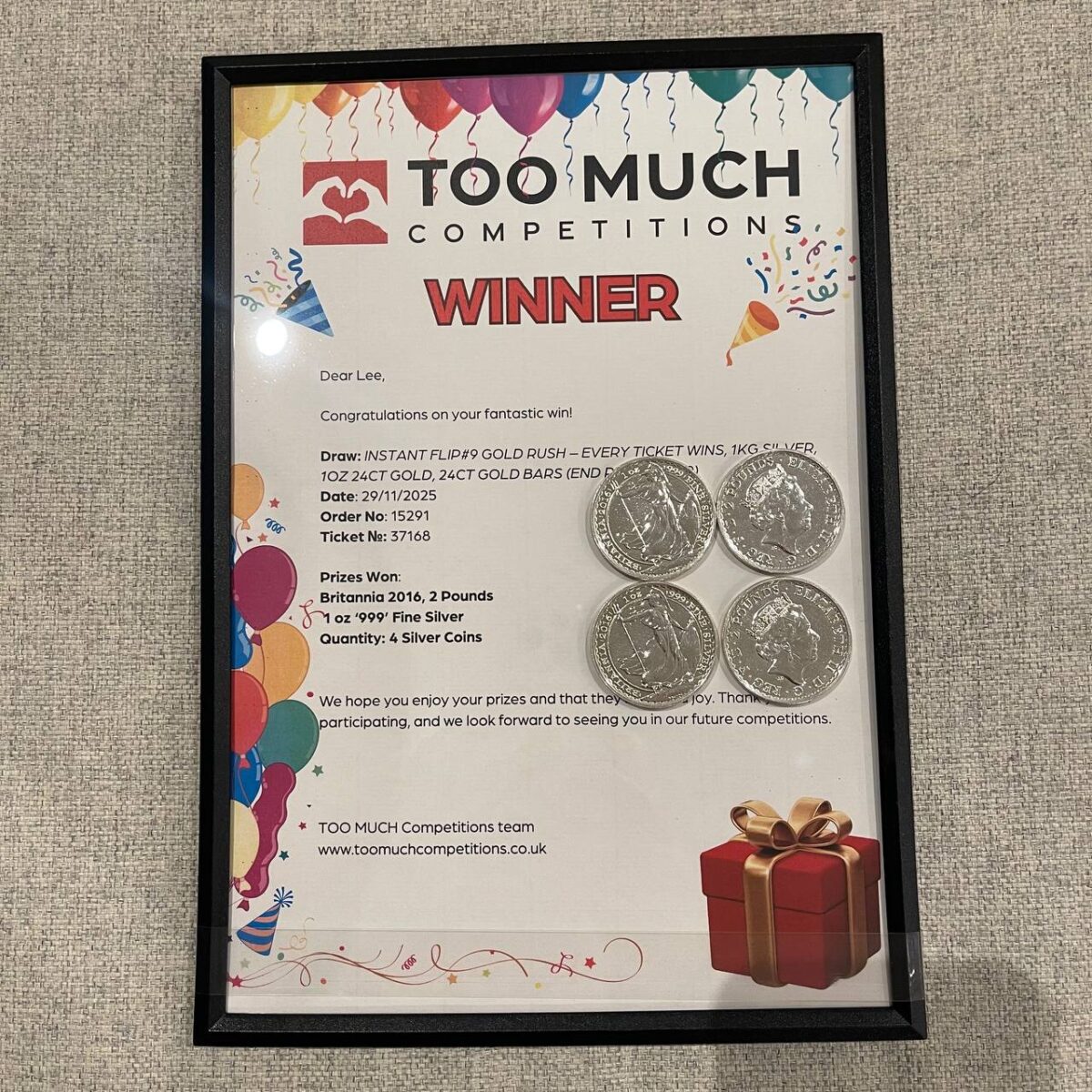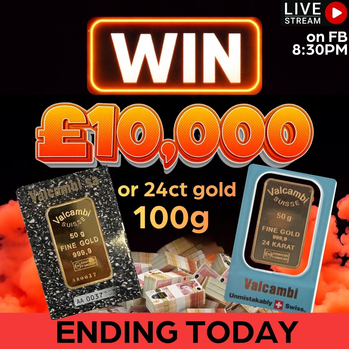 £50 TAX FREE CASH +£10 +£10 +£10 +£10 +£10 +£10 +£10 +£10 +£10 +£10 +£10 +£20 (TICKETS 9951, 9454, 9208, 8152, 6925, 6210, 5108, 4389, 3492, 2069, 943, 8982) IN WIN £100,000 TAX FREE CASH OR 1.5KG 9CT & 14CT GOLD BUNDLE